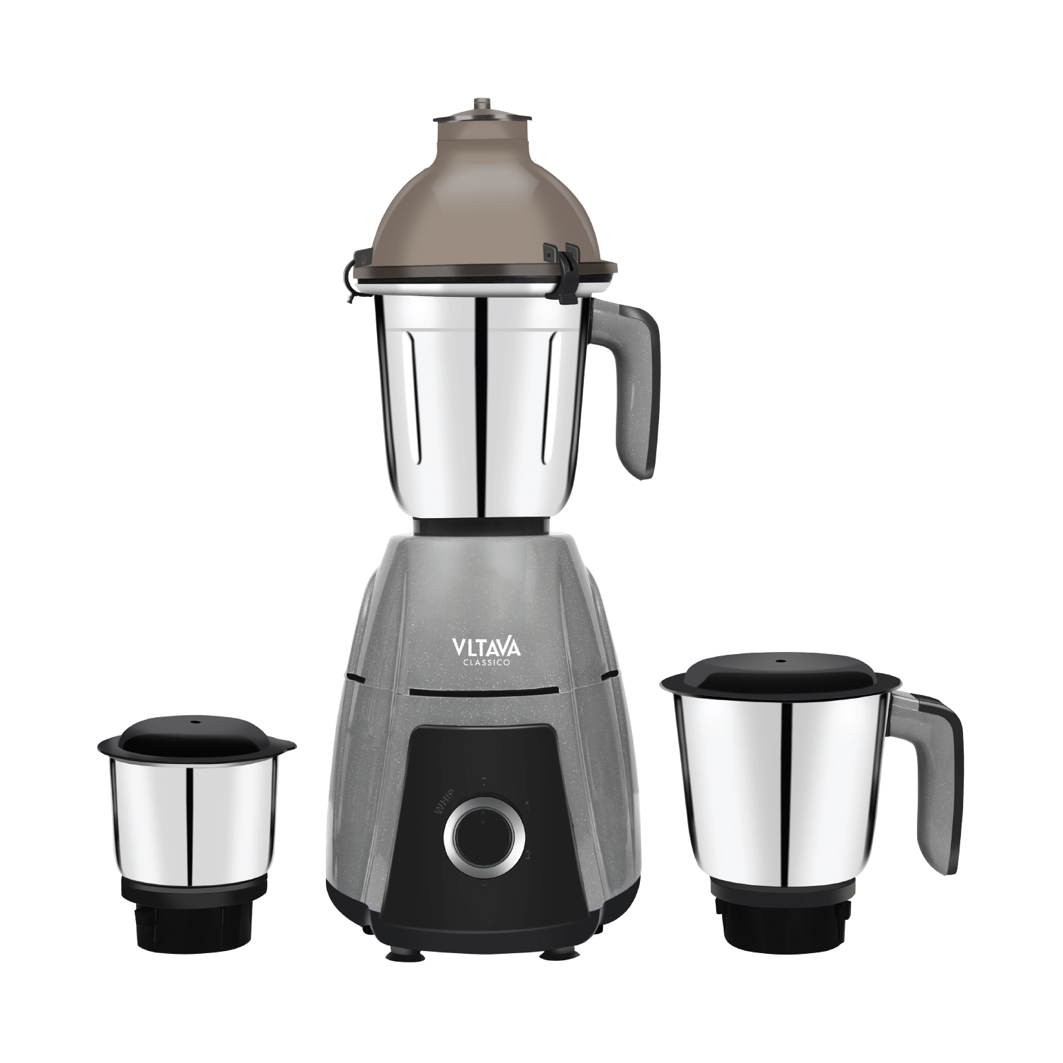 Blender Grinder Chopper 3 In 1 Pulse and 3-speed rotary switch control Long-life stainless steel cutting blade 1.5 Ltr liquidizer jar, 1 Ltr dry grinding jar, 0.5 Ltr chutney jar Outer cap for adding ingredients while blending.