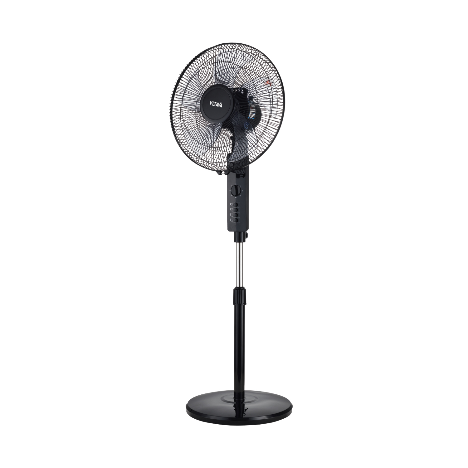 16” Stand Fan with Remote control High Performance Motor Lowest Motor Temperature High Wind Speed Piano Button Switches with 3 Speeds: Low/Med/High Five Leaf Blades.